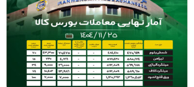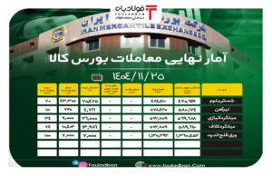 به گزارش خبرنگار فولادبان، امروز شنبه ۲۵ بهمن ۱۴۰۴، در مجموع ۱۲۴ هزار و ۴۸۳ تن محصول فولادی در تالار صنعتی بورس کالای ایران عرضه شد که از این میزان،...
