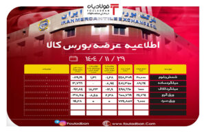 به گزارش خبرنگار فولادبان، براساس تازهترین اطلاعیه عرضه بورس کالا، امروز سهشنبه ۲۸ بهمن ۱۴۰۴ در مجموع ۱۴۹ هزار و ۶۶۸ تن انواع محصولات فولادی در تالارهای باز و صنعتی بورس کالا عرضه شده است. در همین حال، ۶ هزار