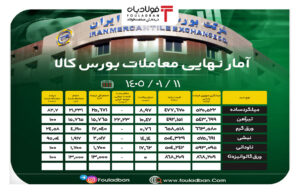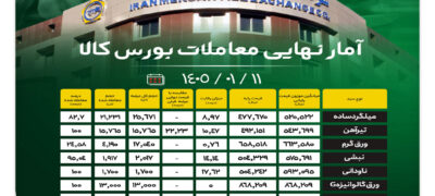 به گزارش خبرنگار فولادبان، امروز سهشنبه ۱۱ فروردین ۱۴۰۵، آمار نهایی بورس کالا تا ساعت ۱۸ بعد از ظهر نشان میدهد که در مجموع ۷۵ هزار و ۱۹۳ تن محصول...