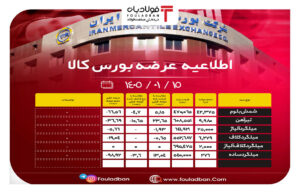 به گزارش خبرنگار فولادبان، براساس جدیدترین اطلاعیه عرضه بورس کالا، امروز شنبه ۱۵ فروردین ۱۴۰۵، ۸۵ هزار و ۹۱۰ تن محصول فولادی در تالار صنعتی حراج باز بورس کالا عرضه شد. بر اساس این گزارش، ۴۲ هزار و ۳۷۵ تن