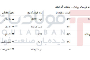 منطقه / بازار | قیمت (دلار/تن) | نوع قیمتگذاری | تغییر هفتگی |