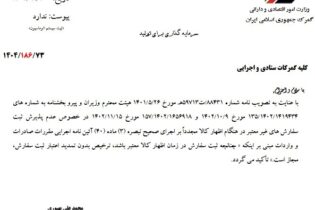گمرک ایران در بخشنامهای تاکید کرد که چنانچه ثبت سفارش در زمان اظهار کالا معتبر باشد، ترخیص بدون تمدید اعتبار ثبت سفارش مجاز است.